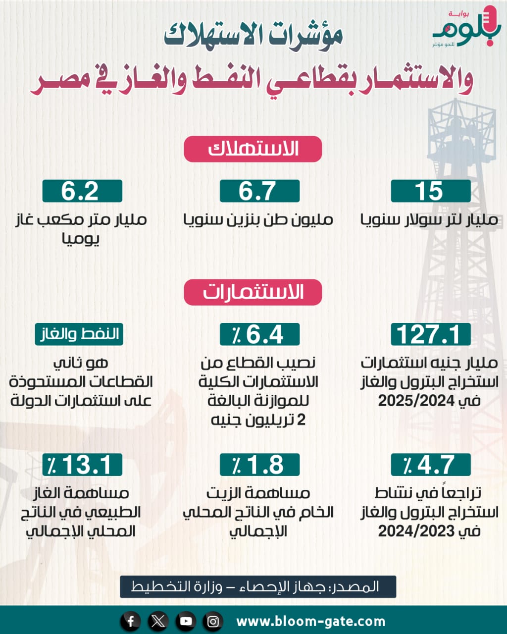 وخلال العامين الأخيرين مر قطاع البترول المصري بتحديات كبيرة نتيجة أزمة النقد الأجنبي التي أدت إلى تراكم مستحقات شركات البترول الأجنبية قبل قرارات مارس 2024 بتعويم سعر الصرف وإبرام اتفاق تمويلي جديد مع صندوق النقد الدولي وإبرام صفقة مشروع رأس الحكمة، ما أدى حينها إلى تقليص إنتاج شركات النفط ضخ استثمارات في امتيازاتها، فضلاً عن تباطؤ عمليات لاستكشاف في آبار البترول وحقول الغاز الطبيعي، ويستعرض الإنفوجراف الآتي مؤشرات تعكس طبيعة قطاع البترول في مصر.