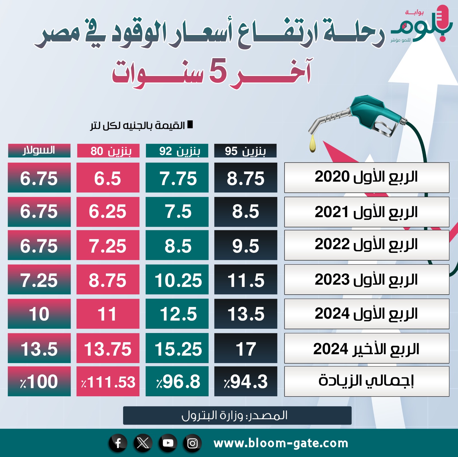 ومنذ سنوات، تعمل الحكومة المصرية على إعادة هيكلة منظومة الدعم وعلى رأسها دعم المنتجات البترولية لتقليص عجز الموازنة، ما ترتب عليه قفزات سعرية للبنزين من سنة لأخرى سيتم إلقاء الضوء عليها في الإنفوجراف القادم مع تحديد قيمة الزيادة في كل نوع من انواع البنزين وكذلك السولار.
