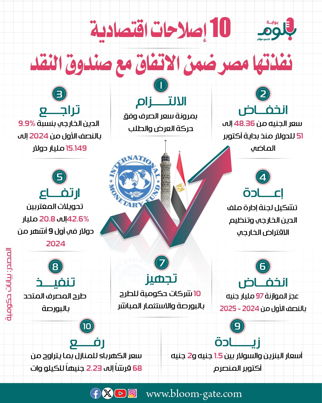 وبينما تتصاعد مطالب صندوق النقد بتنفيذ مصر المزيد من الإصلاحات الاقتصادية، فإن الحكومة قطعت فعلياً حزمة إصلاحات وفق رؤية الصندوق خلال الفترة الأخيرة تتنوع ملفاتها بين إدارة الدين الخارجي وسعر الصرف وإدارة ملف الطاقة والضرائب وغيرها من الخطوات التي ينتناولها هذا الإنفوجراف.