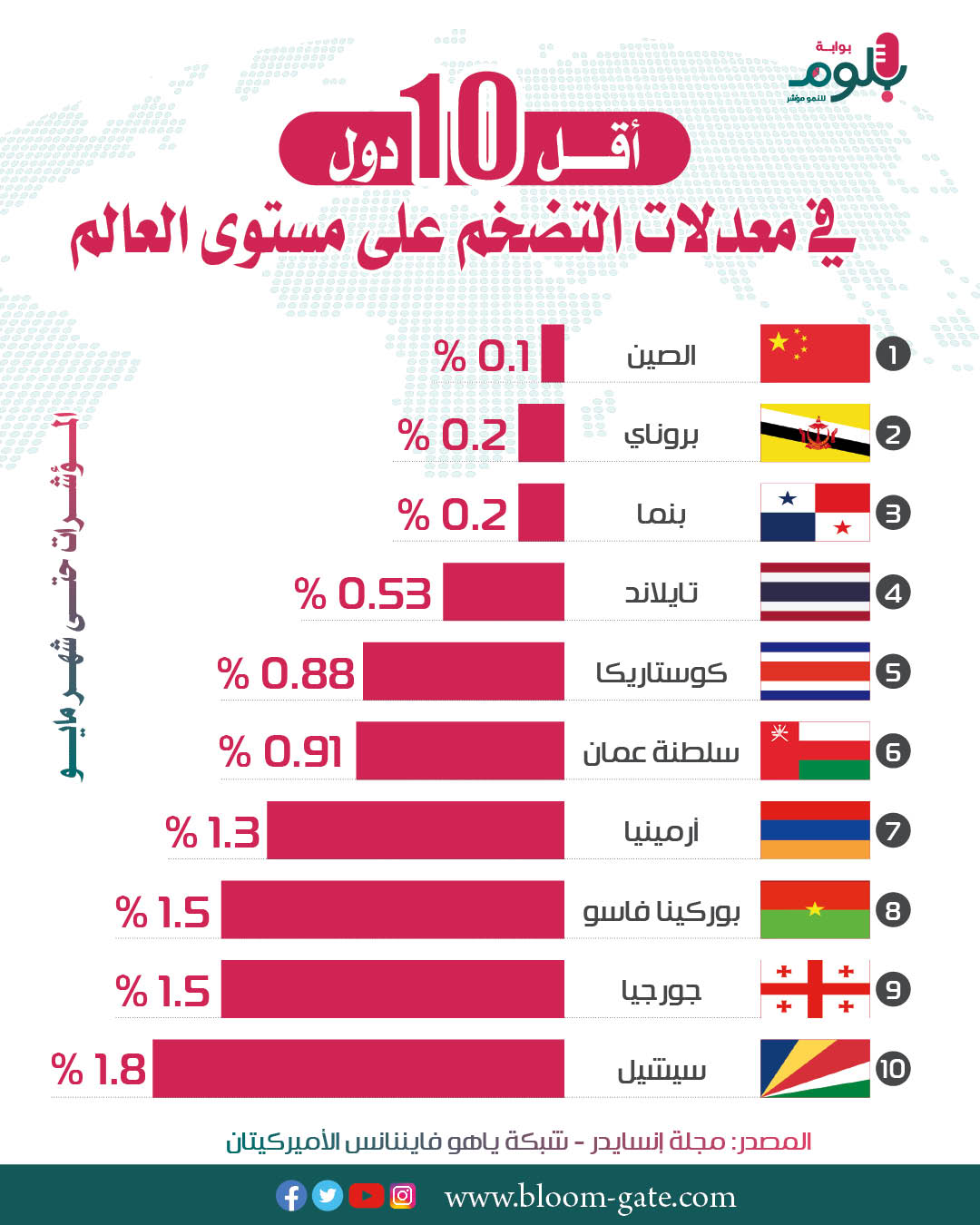 إنفوجراف.. أقل 10 دول في معدلات التضخم على مستوى العالم