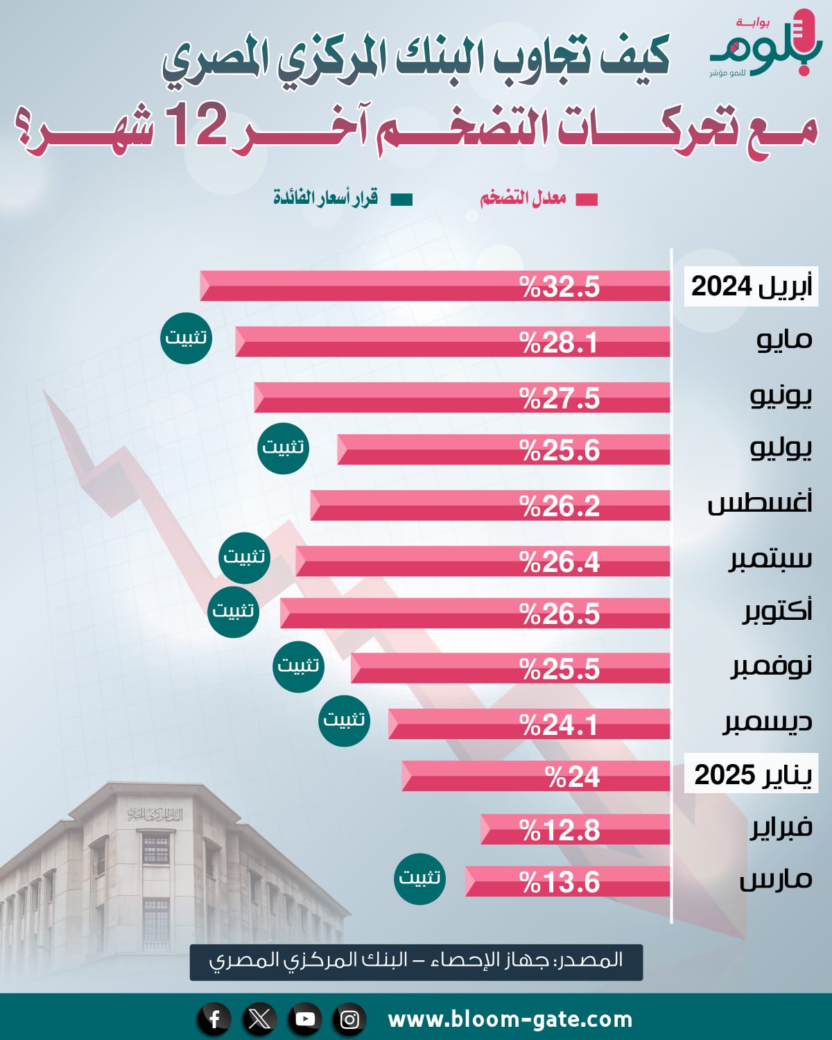 تتزايد فرص الخفض في اجتماع البنك المركزي المصري لتحديد أسعار الفائدة اليوم، بدعم من تراجع التضخم في مدن مصر إلى أدنى مستوى له منذ 3 سنوات خلال فبراير الماضي عند 12.8%، قبل أن يتسارع التضخم مجدداً خلال مارس الماضي إلى 13.6% على أساس سنوي، بحسب بيانات جهاز الإحصاء، ليثير تساؤلات حول ما إذا كان سيتجه المركزي نحو تقليص الفائدة أما يواصل نهج التثبيت، هذا ما سيناقشه الفيديو الآتي.