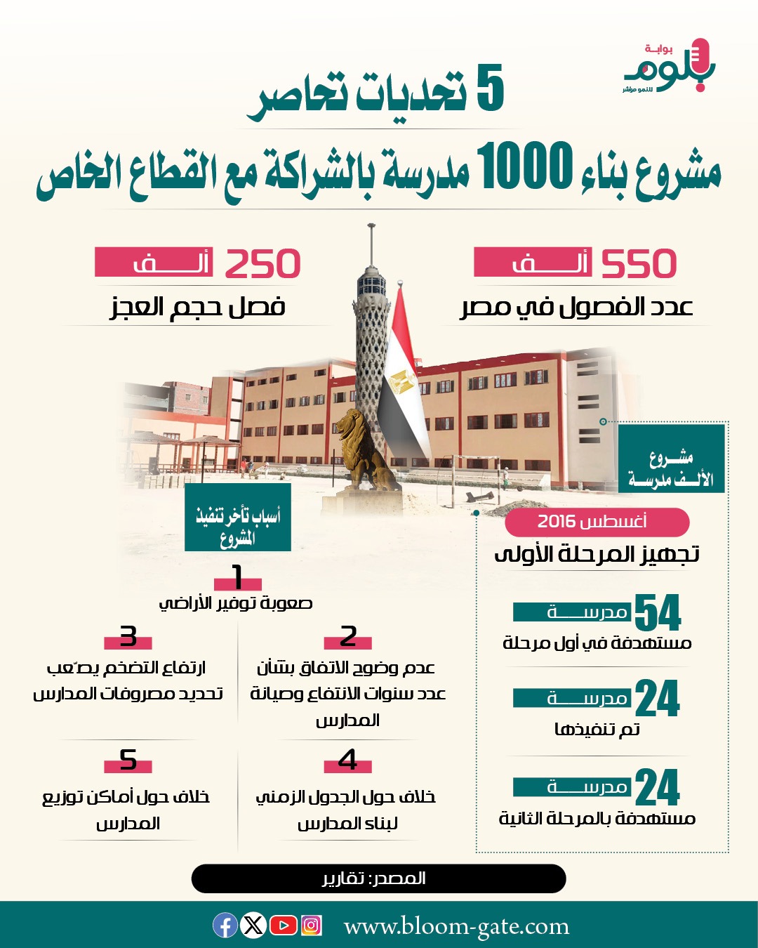 تبنت مصر قبل قرابة 10 سنوات مشروعاً طموحاً بإنشاء 1000 مدرسة بالشراكة مع القطاع الخاص ضمن رؤية 2030، والتى تركز على ترشيد الإنفاق فى جميع المجالات من خلال قيام المستثمر بالدور الاقتصادى الذى تلعبه الدولة، ولكن لم يحقق المشروع النتائج المرجوة حتى الآن نتيجة العديد من التحديات التي سيستعرضها الإنفوجراف الآتي.