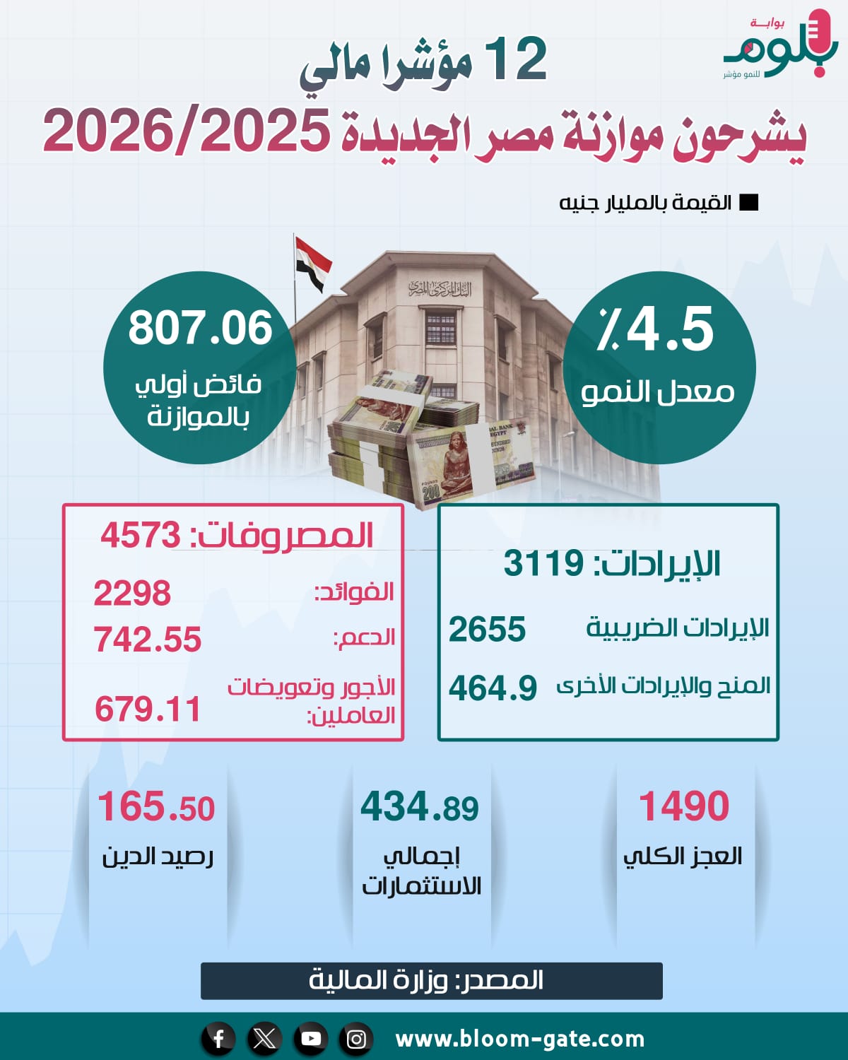 وأعدت الحكومة موازنة العام المالي القادم 2025-2026 وسط تقلبات اقتصادية وتجارية عالمية، فرضت على الحكومة مزيد من التحديات والحاجة إلى دعم أسس الاقتصاد الداخلي، والتعامل مع الصدمات الخارجية والاستفادة من الفرص الاقتصادية المتاحة، ولفهم أكبر للموازنة الجديدة فيمكن الاطلاع على الإنفوجراف التالي الذي يسلط الضوء على أبرز المؤشرات المالية.