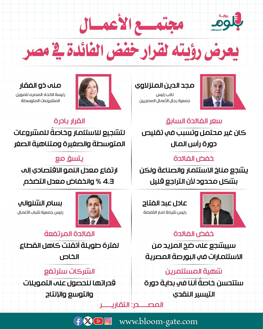 واستند البنك المركزي المصري في قرار خفض الفائدة إلى تعافي النشاط الاقتصادي خلال الربع الأول من عام 2025، وعلى الرغم من عدم تحديد المركزي نسبة نمو الاقتصاد في الربع الأول، لكنه قال إنه تجاوز معدل النمو النسبة البالغة 4.3% المسجلة في الربع الأخير من عام 2024، ومع ذلك فإن النشاط الاقتصادي لا يزال دون طاقته القصوى، ما يطرح تساؤلاً حول تأثير قرار خفض الفائدة على الوضع الاستثماري، ويقدم هذا الإنفوجراف إجابة لهذا التساؤل.