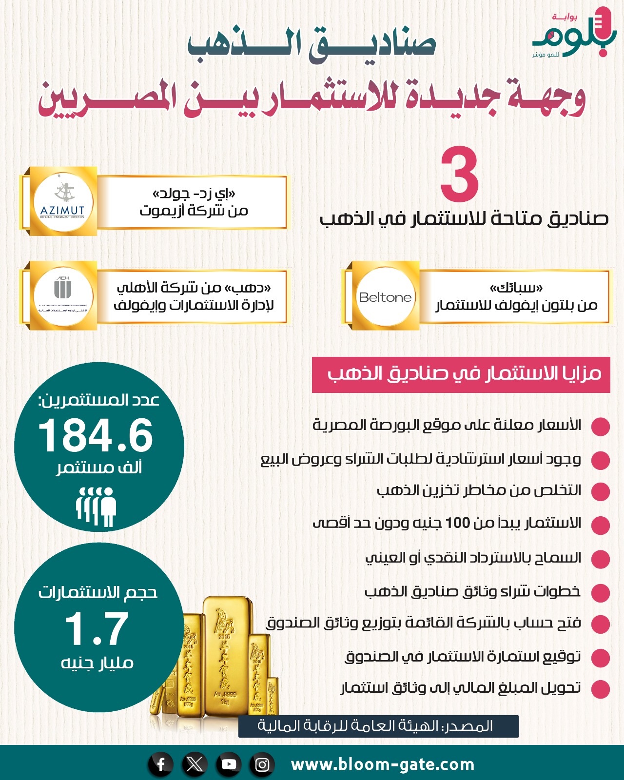 وهناك اتجاه من المصريين لشراء الذهب من خلال صناديق الذهب التي استقبلتها السوق المصرية في عام 2023 ، بدايةً من صندوق «إي زد- جولد» أصدرته شركة أزيموت، لتفتح الطريق أمام إطلاق أكثر من صندوق للذهب، ويوضح الإنفوجراف التالي حجم استثمار المصريين في صناديق الذهب والصناديق المتاحة في مصر وكيفية التداول من خلالها.