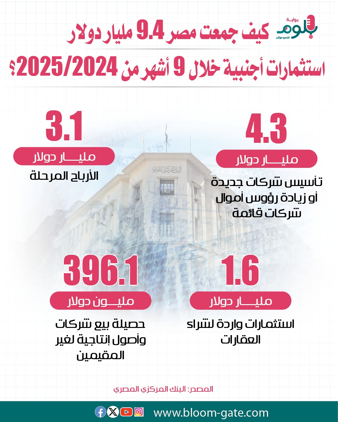 فيما يتعلق بشق الاستثمارات الأجنبية المباشرة فإن التيسيرات التي قدمتها الحكومة، ممثلة في الحوافز التي أعلنتها وزارة الاستثمار، لاستقطاب كبرى الشركات العالمية، وتأسيس شركات جديدة، باعتبار أن ذلك أحد المحاور الرئيسية لرفع إيرادات مصر الدولارية، وظهرت نتائج ذلك بصورة واضحة في الفترة من يوليو 2024 حتى مارس 2025، من خلال تحقيق صافي تدفق للداخل بلغ نحو 9.1 مليار دولار، في القطاعات غير البترولية، وسوف نستعرض تفاصيل ذلك في الإنفوجراف الآتي.