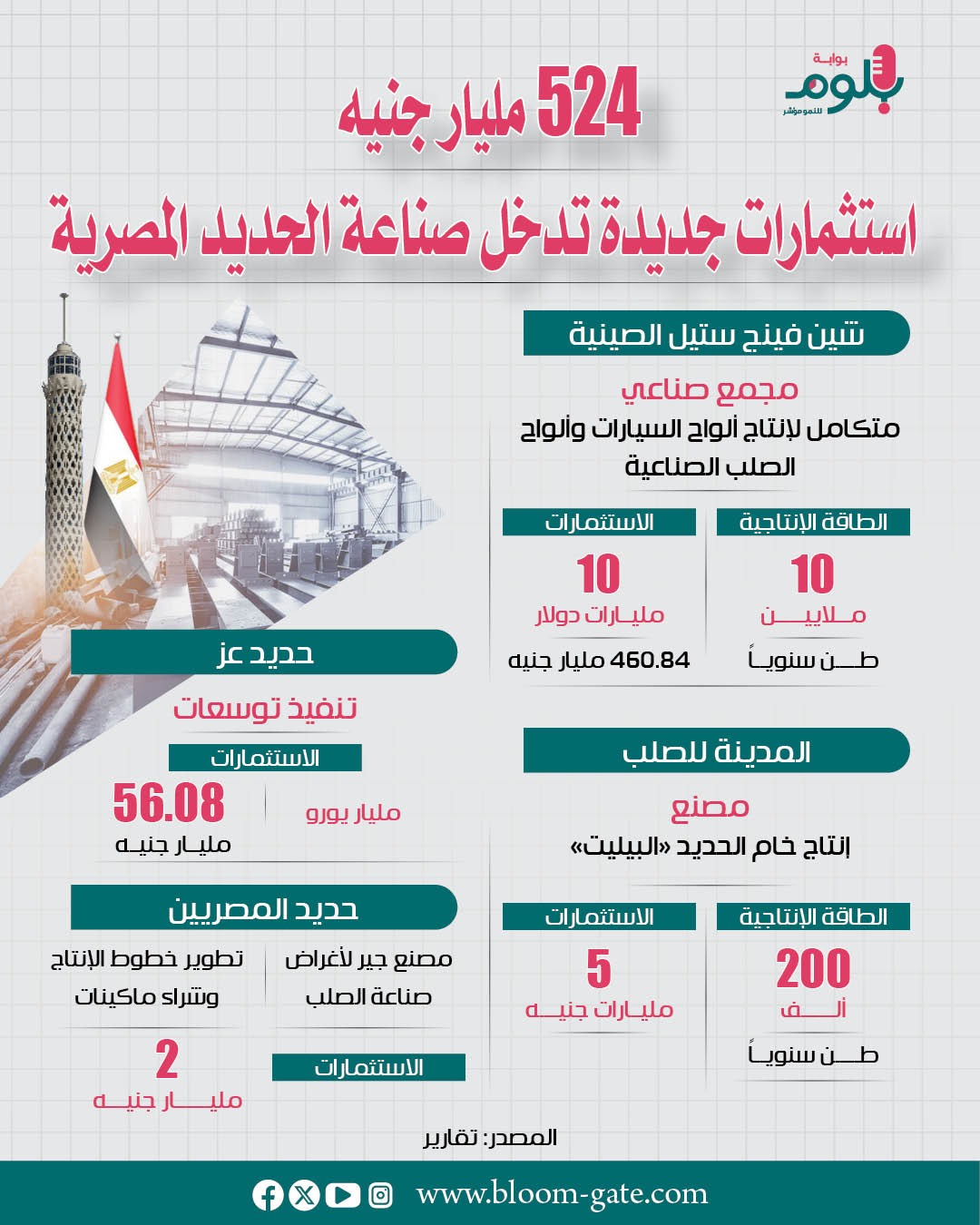 على الرغم من الصعوبات التي تواجه مصانع الحديد في مصر بالفترة الحالية، إلا أن القطاع ما زال جاذبا لضخ استثمارات جديدة سواء تنفيذ توسعات بمصانع قائمة بهدف إضافة خطوط إنتاج جديدة وتطوير تقنيات التشغيل أو بناء مصانع جديدة لإنتاج خام البيليت أو تصنيع حديد التسليح، ويسلط هذا الإنفوجراف الضوء على أبرز الاستثمارات المعلنة بقطاع الحديد.