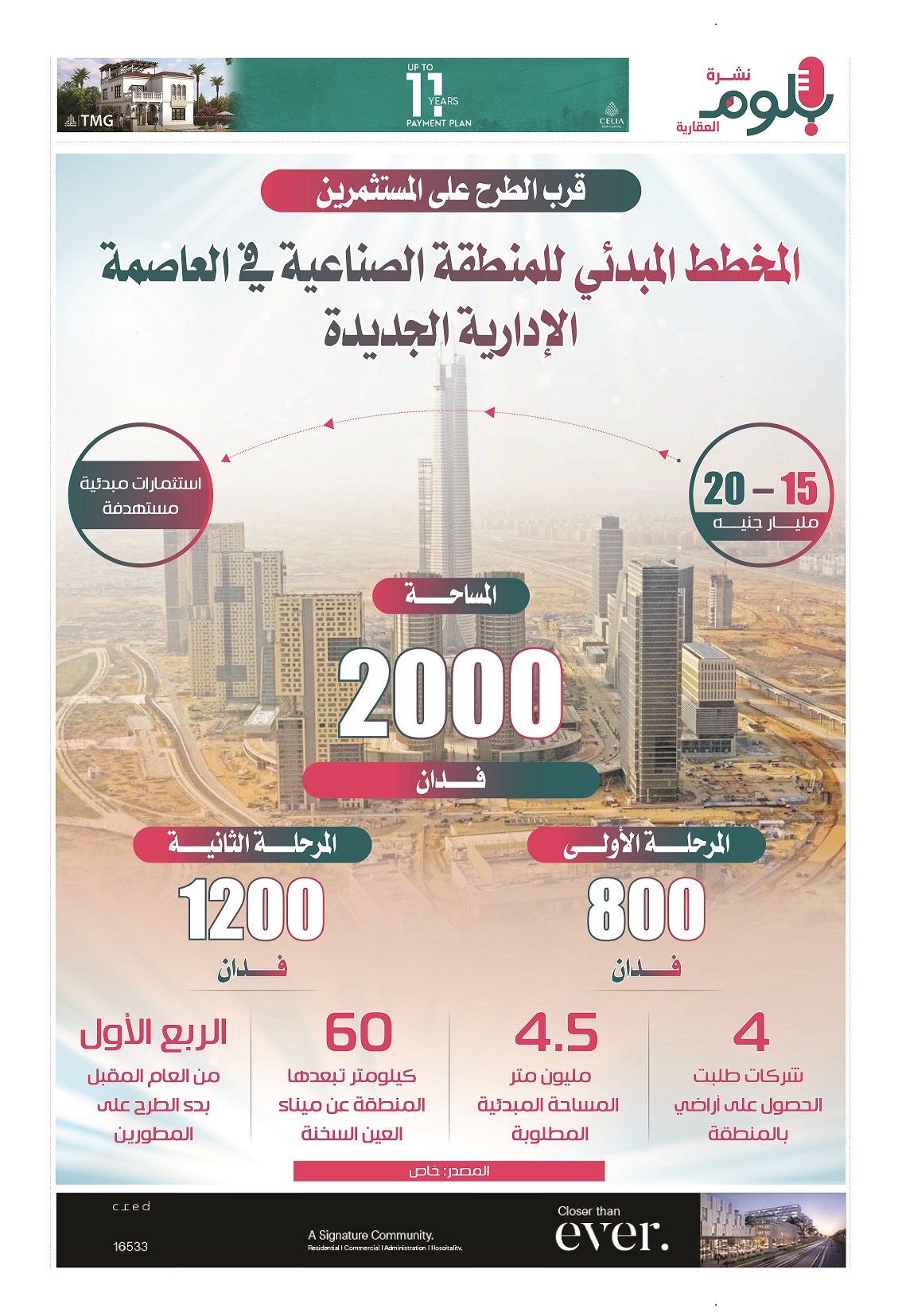 إنفوجراف.. المخطط المبدئي للمنطقة الصناعية في العاصمة الإدارية الجديدة