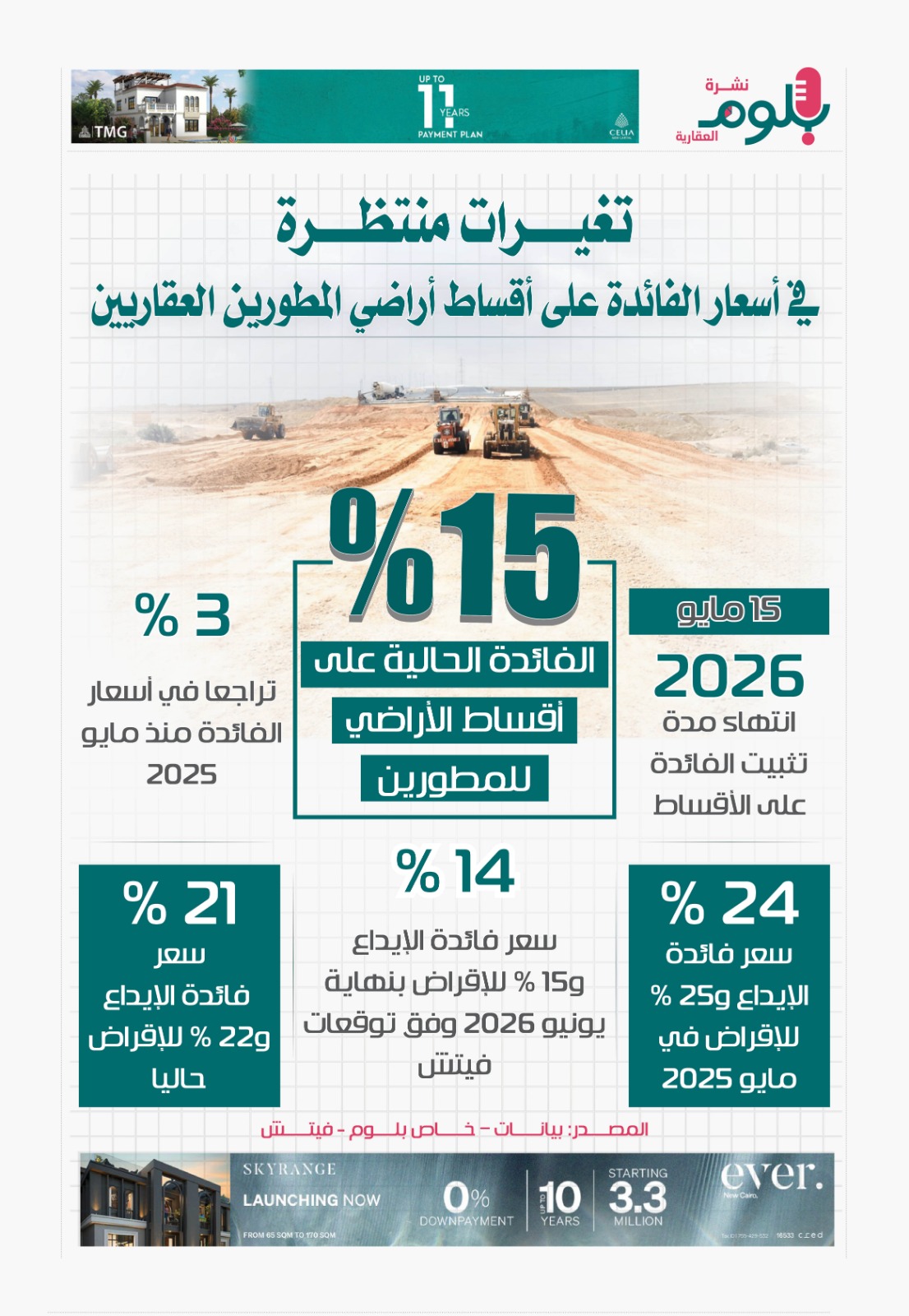 إنفوجراف.. تغيرات منتظرة في أسعار الفائدة على أقساط أراضي المطورين العقاريين