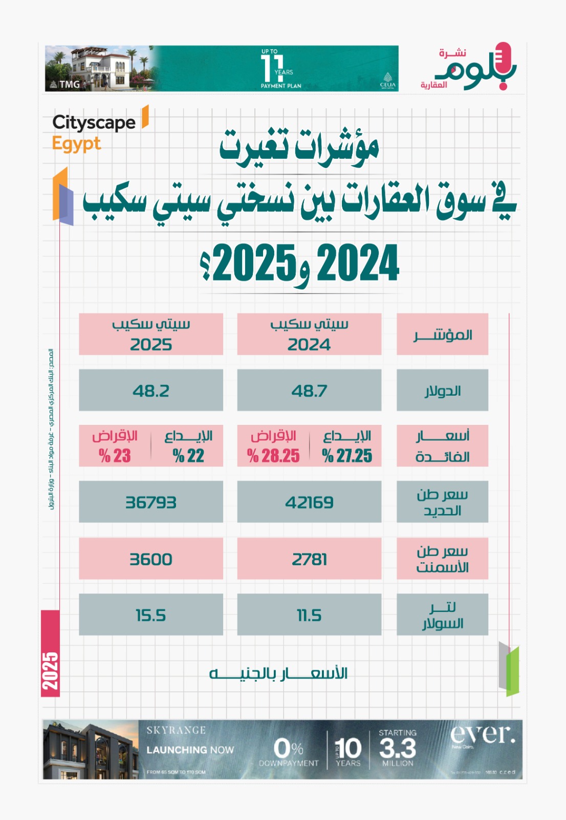 إنفوجراف.. مؤشرات تغيرت في سوق العقارات بين نسختي سيتي سكيب 2024 و2025؟