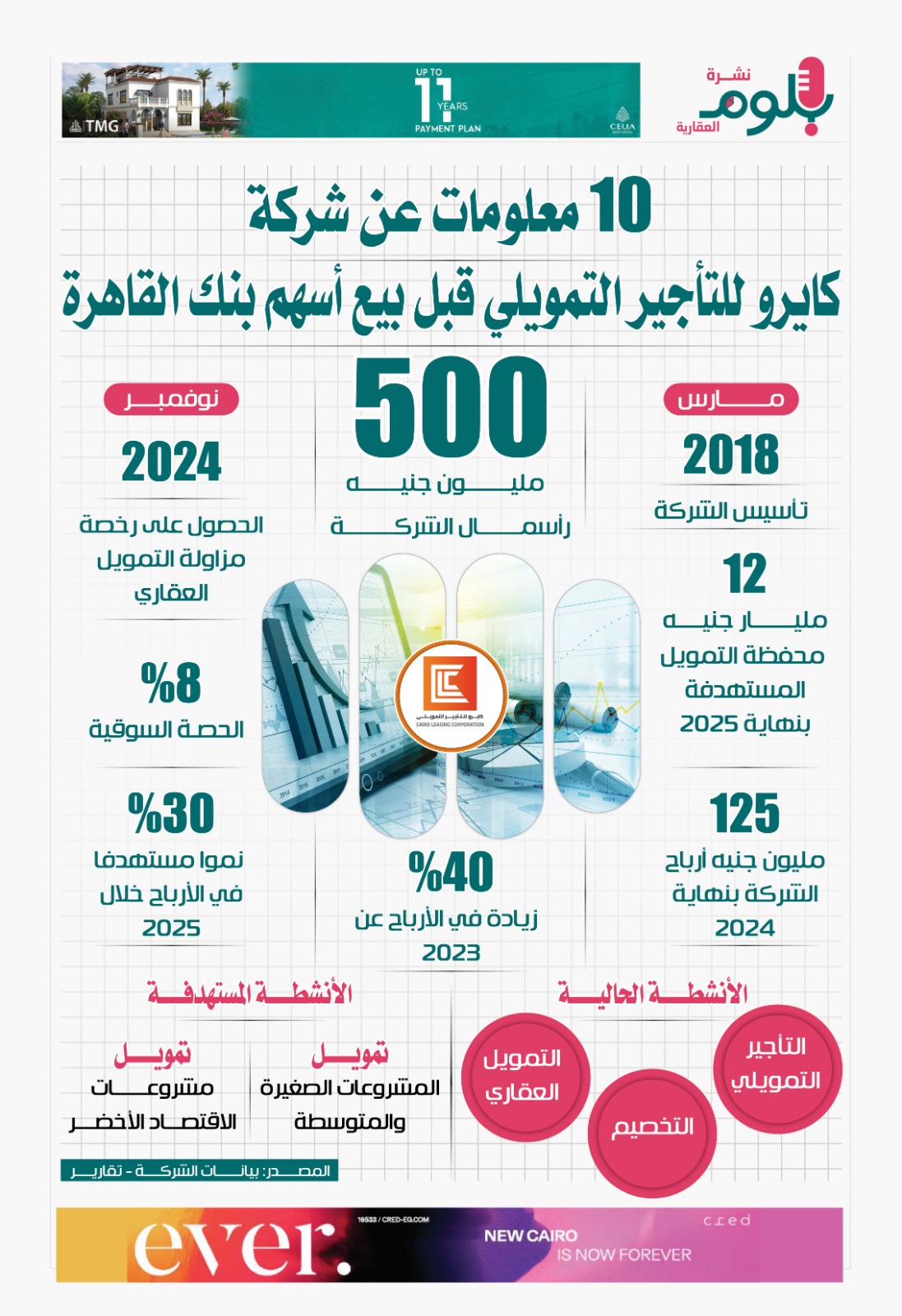 إنفوجراف.. 10 معلومات عن شركة كايرو للتأجير التمويلي التابعة لبنك القاهرة