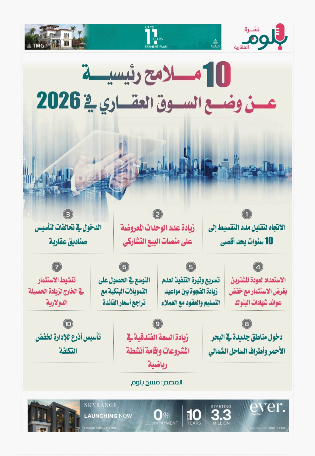 يشهد السوق العقاري خلال العام الجديد تغيرات كبيرة سواء على صعيد تحركات الشركات، أو وضع البيع والشراء، في ظل حالة الهدوء وتأثر القدرات الشرائية للعملاء، وهو ما سيؤثر على خطط المطورين، وملامح السوق، وفي الإنفوجراف الآتي سوف نسلط الضوء على أهم تلك الملامح.