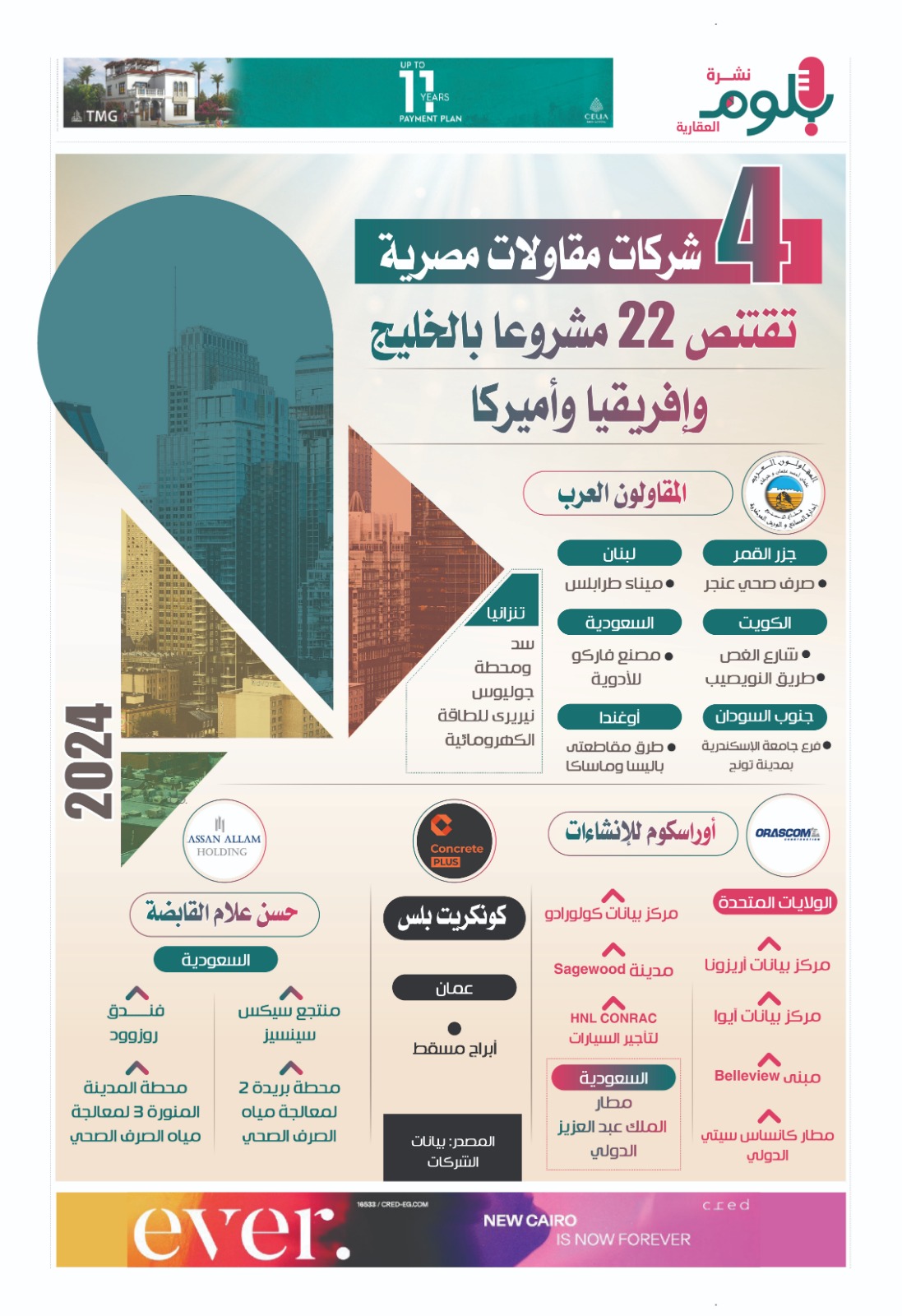 4 شركات مقاولات مصرية تنفذ 22 مشروعا بالخليج وإفريقيا وأميركا.. إنفوجراف