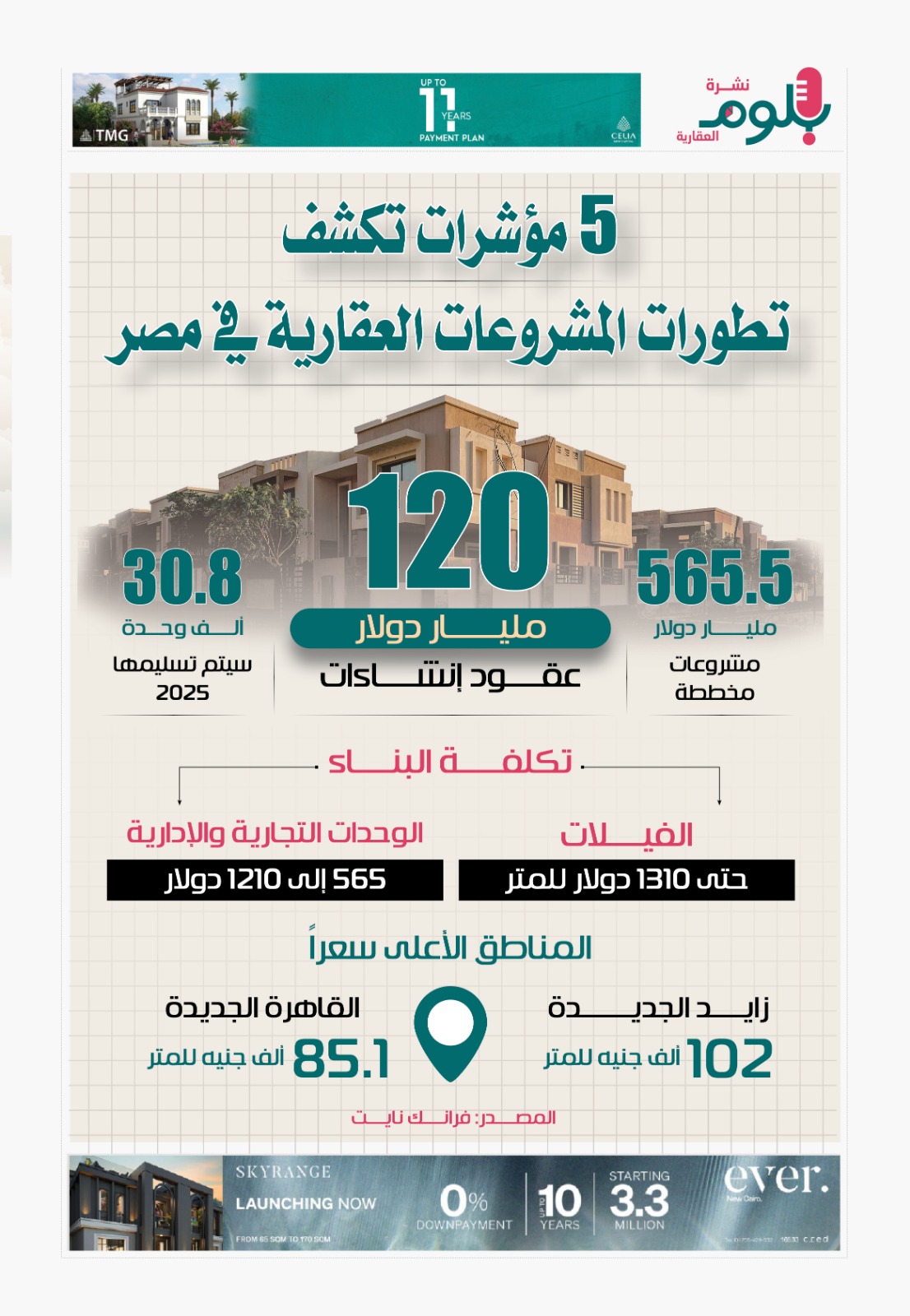 إنفوجراف.. 5 مؤشرات تكشف تطورات المشروعات العقارية في مصر
