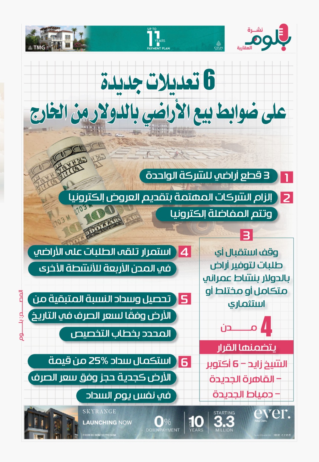إنفوجراف.. 6 تعديلات جديدة على ضوابط بيع الأراضي بالدولار من الخارج