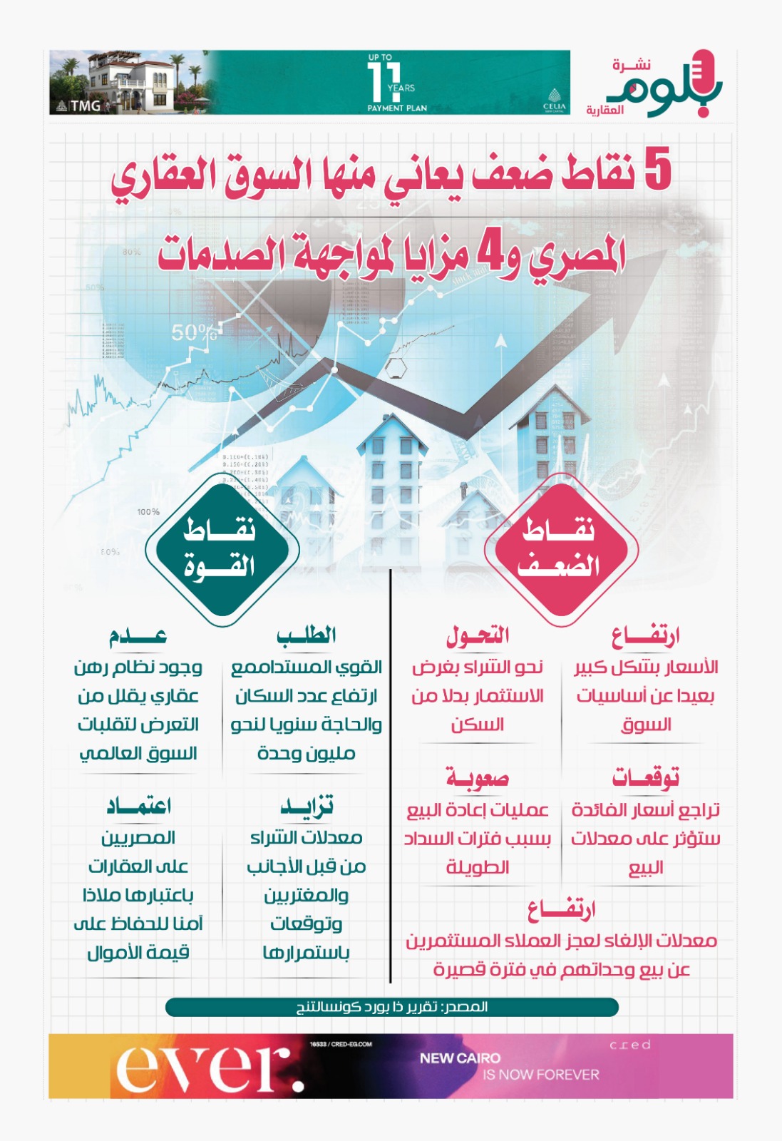 5 نقاط ضعف يعاني منها السوق العقاري المصري و4 مزايا لمواجهة الصدمات.. إنفوجراف