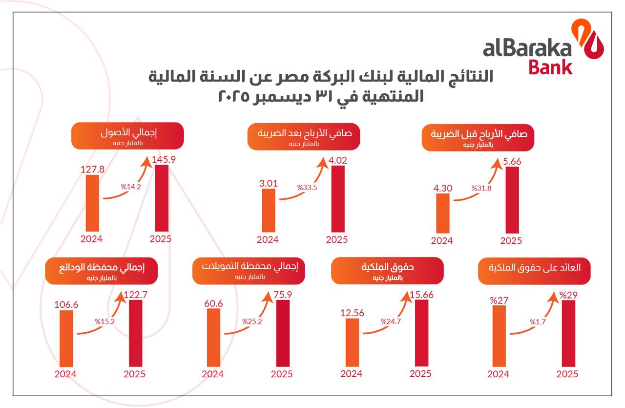 ومن جانبه قال حازم حجازي، الرئيس التنفيذي ونائب رئيس مجلس الإدارة لبنك البركة – مصر، إن النتائج الاستثنائية التي حققها بنك البركة خلال عام 2025 وتجاوز صافي أرباحنا حاجز الـ 4 مليارات جنيه، هي ثمرة استراتيجية طموحة ترتكز على النمو المتوازن وتنويع مصادر الدخل.