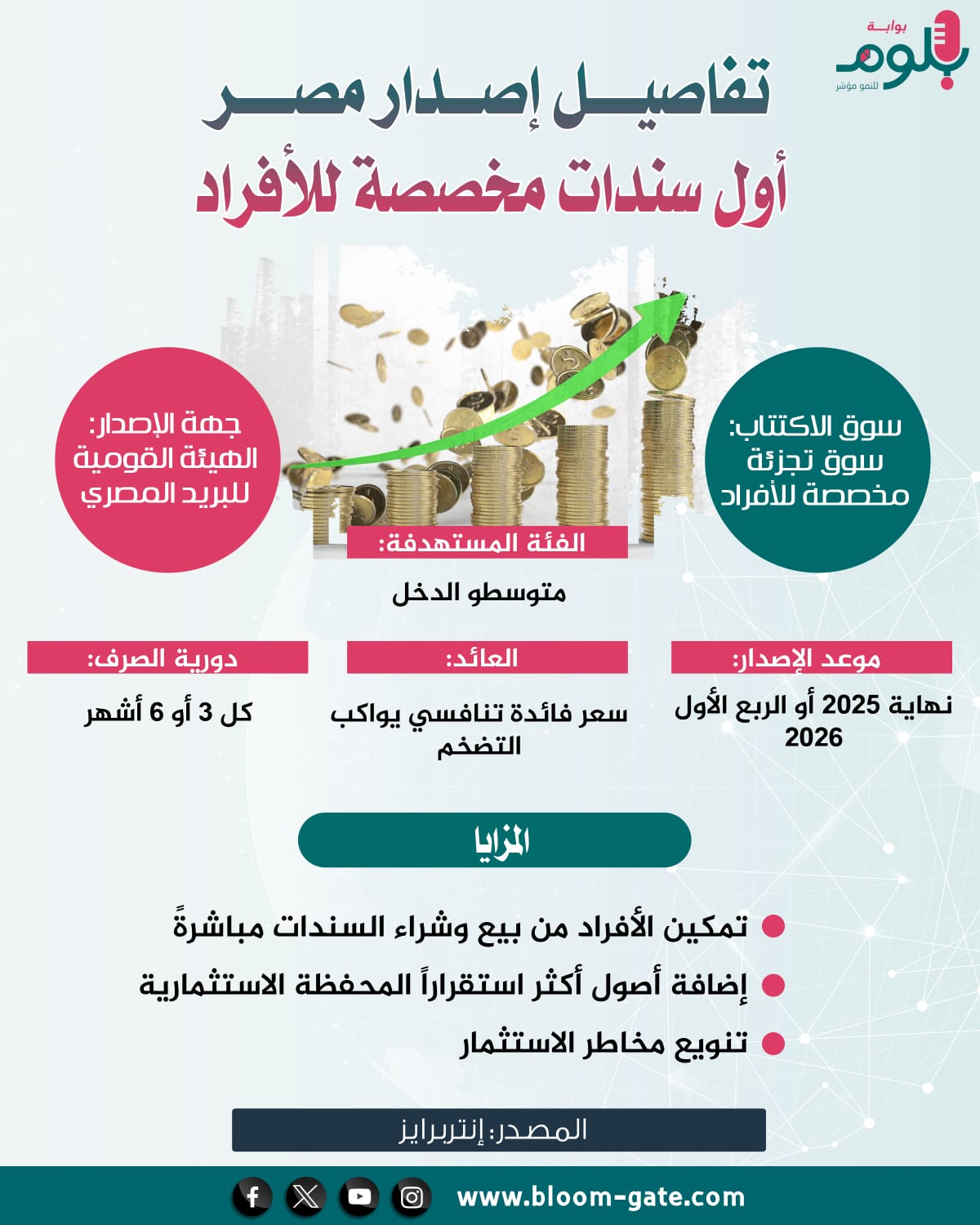 من جانب آخر، تعكف الحكومة على تدشين أول سوق مصرية لسندات التجزئة ستبدأ أعمالها خلال الربع الأول من عام 2026، أو حتى قبل نهاية العام الجاري، والتي تتيح للأفراد والمستثمرين غير المحترفين شراء السندات وبيعها، ومن ثم فتح مجالات أوسع للاستثمار وحشد المدخرات للتنمية الاقتصادية، ونلقي في هذا الإنفوجراف الضوء على أول إصدار سندات مرتقب للأفراد والشريعة المستهدفة منهم وآلية صرف العائد.