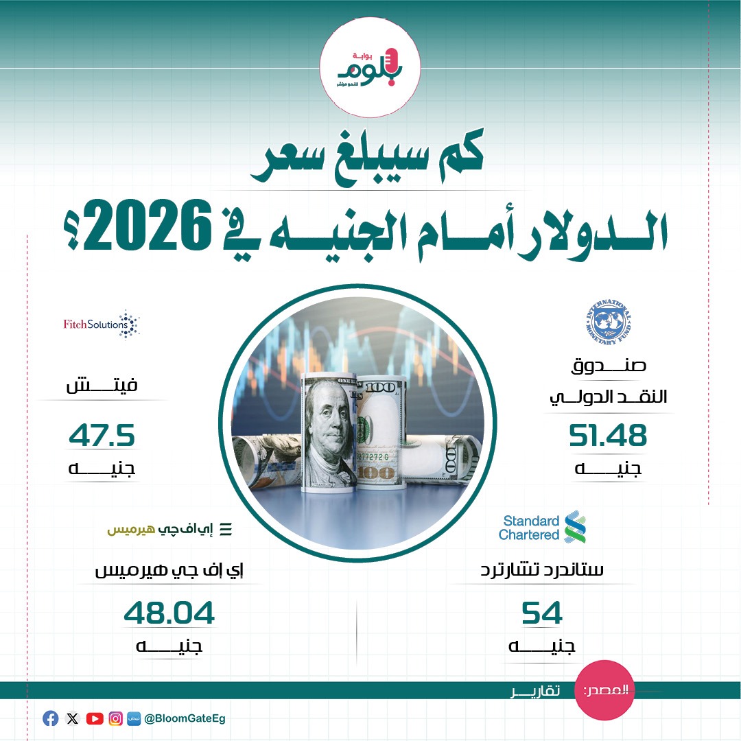 تشير توقعات خبراء الاقتصادي إلى أن سعر صرف الجنيه سيتحرك في نطاق 45 إلى 54 للدولار خلال العام الراهن، مع تلقي دعمًا من تزايد السيولة الدولارية، وتحسن الاقتصاد وسط نمو صافي الأصول الأجنبية في مصر بمقدار 10 مليارات دولار وهو الأعلى في عقد كامل، بالإضافة إلى تحويلات المصريين بالخارج واستثمارات الأجانب، ونلقي الضوء في هذا الإنفوجراف على توقعات المؤسسات المالية والخبراء لسعر الجنيه في 2026.