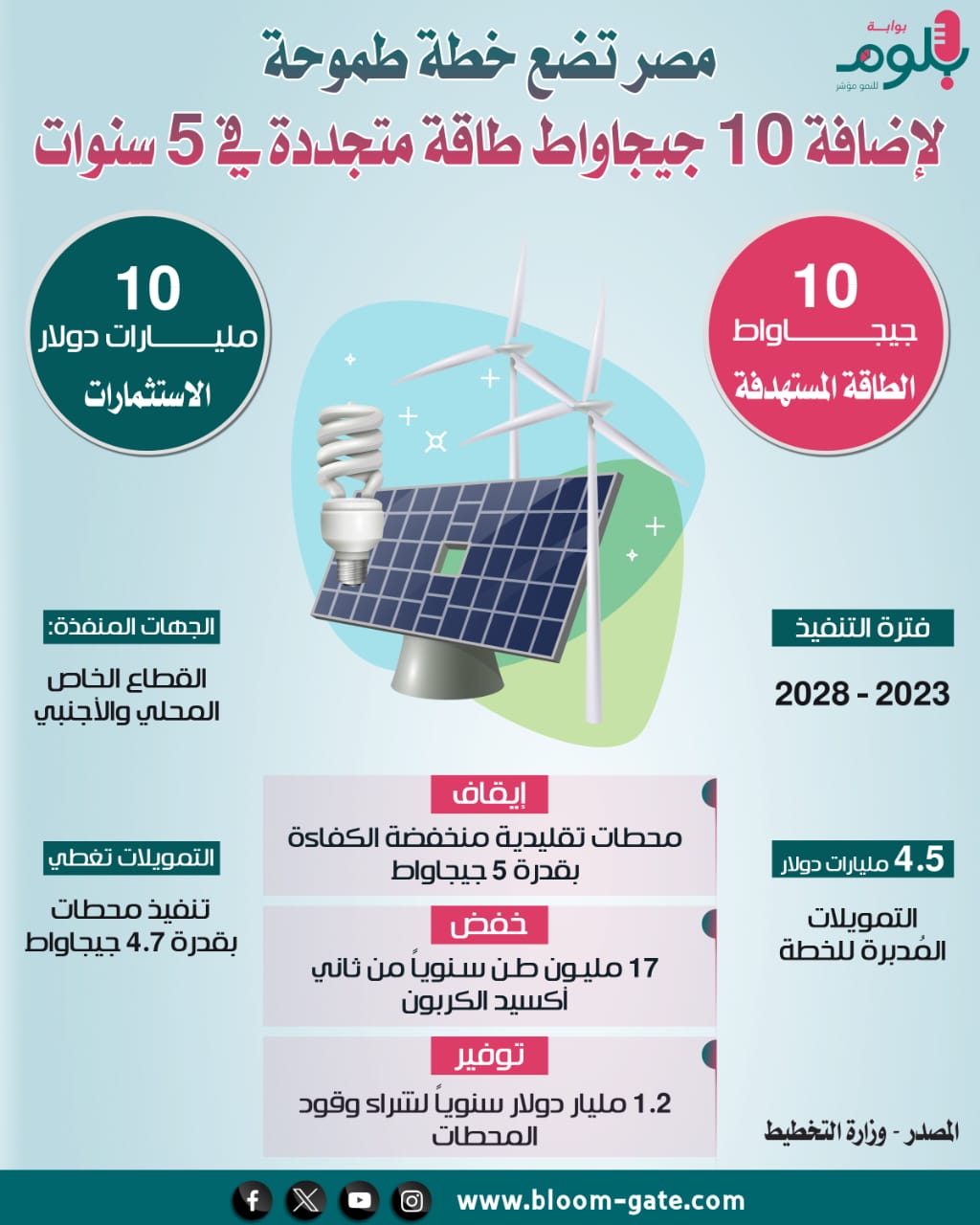 في الوقت نفسه، تعكف وزارة التخطيط والتنمية الاقتصادية والتعاون الدولي على تنفيذ عدة مشروعات طاقة متجددة ضمن محور الطاقة بالمنصة الوطنية لبرنامج نُوَفِّــي، وحشد استثمارات من مؤسسات تنموية دولية بعدة مليارات من الدولارات، بالتوازي مع استبدال المحطات الجديدة بمحطات منخفضة الكفاءة تعتمد على الوقود الأحفوري، وهي الخطة التي نستعرضها في الإنفوجراف الآتي.