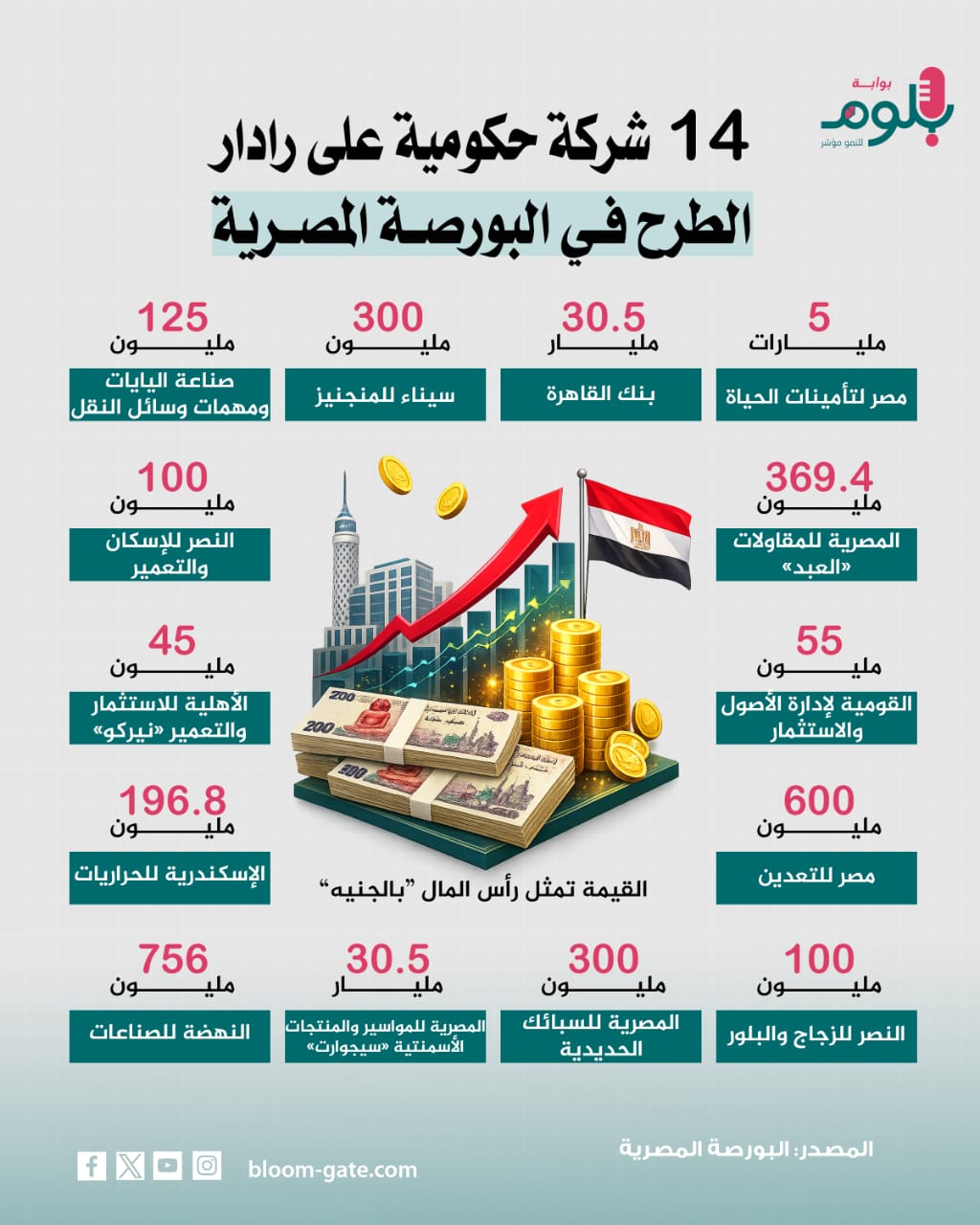شهدت الأيام الأخيرة قيد 6 شركات حكومية جديدة بالبورصة، فضلاً عن تلقي طلبات بقيد 6 شركات أخرى قيدًا مؤقتًا، بهدف تجهيزها لطرح أسهمها بما يسهم في زيادة وتعميق رأس المال السوقي للبورصة، وتنمية معدلات السيولة وقيم التداول، إلى جانب جذب الاستثمارات، وترصد القائمة التالية الشركات الجاري تجهيزها للقيد والطرح ورأسمال كل منها.