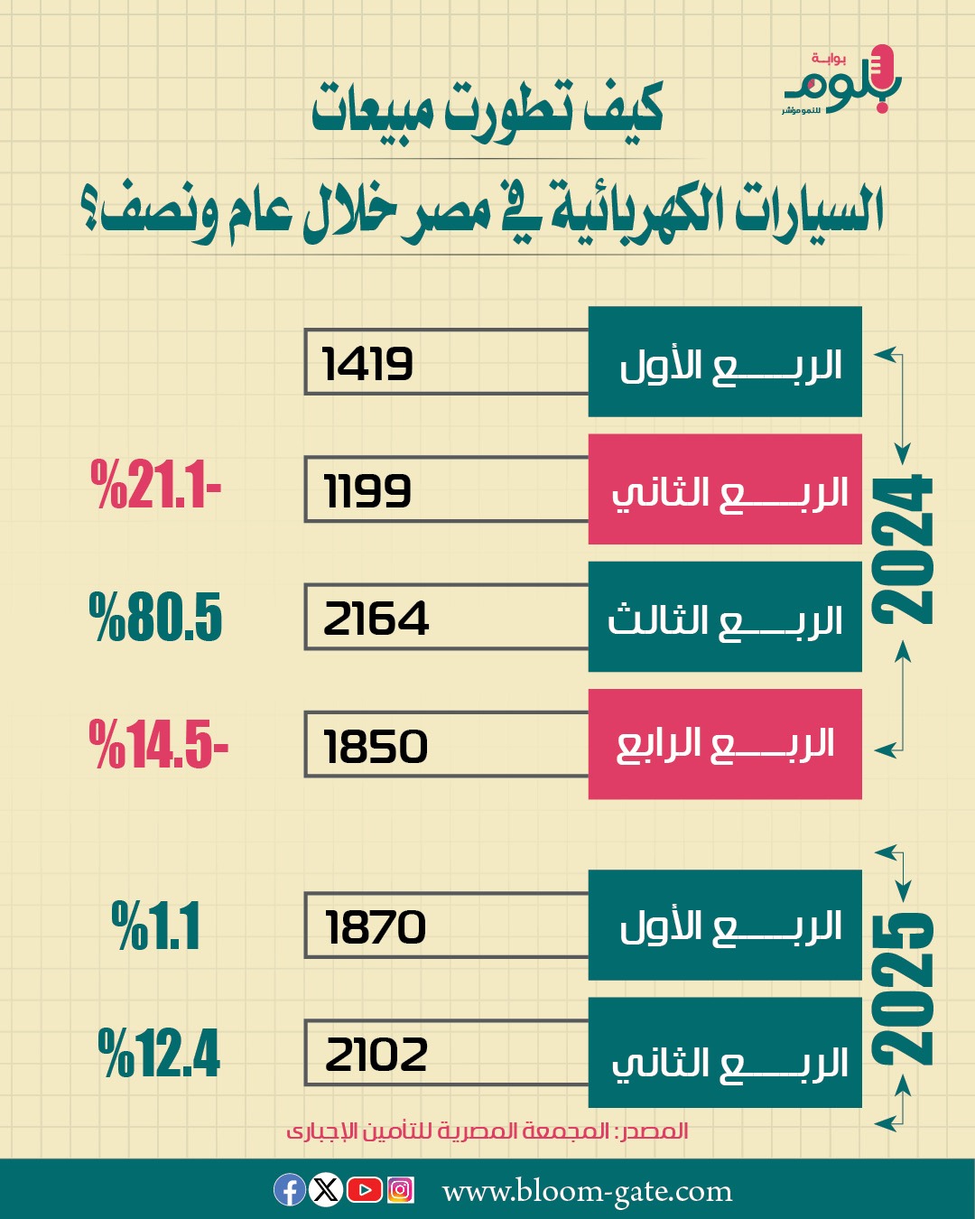 فيما شهدت مبيعات السيارات الكهربائية في مصر نمواً الفترة الأخيرة، حيث قفز عدد تراخيص السيارات الكهربائية زيادة بنسبة 91.4% خلال 2024، مسجلة 6632 سيارة مقابل عدد تراخيص بلغ 3212 سيارة خلال  2023، إلى نحو 6150 سيارة خلال العام الماضي، مستفيدة من الامتيازات الممنوحة من الدولة، وعلى رأسها الإعفاء الجمركي الكامل، وخضوعها لضريبة القيمة المضافة فقط بنسبة 14%، واكتساب معاملة ميسرة في الترخيص السنوي الذي لا يتجاوز 500 جنيه، ما شجع الآلاف على اقتناء هذا النوع من السيارات، ونستعرض في هذا الإنفوجراف مبيعات المركبات الكهربائية منذ بداية 2024.