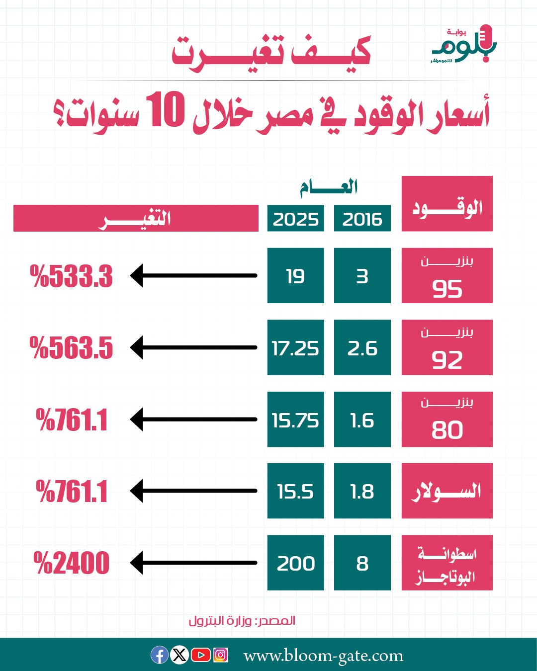 تغيرت أسعار الوقود في مصر بشدة منذ تأسيس لجنة تسعير المواد البترولية في يوليو 2016، والتي هدفت إلى ربط الأسعار المحلية بالتغيرات العالمية في سوق البترول وخفض الدعم، ونرصد في الإنفوجراف التالي التغير في أسعار الوقود منذ قرار تشكيل اللجنة قبل 10 سنوات حتى الآن.