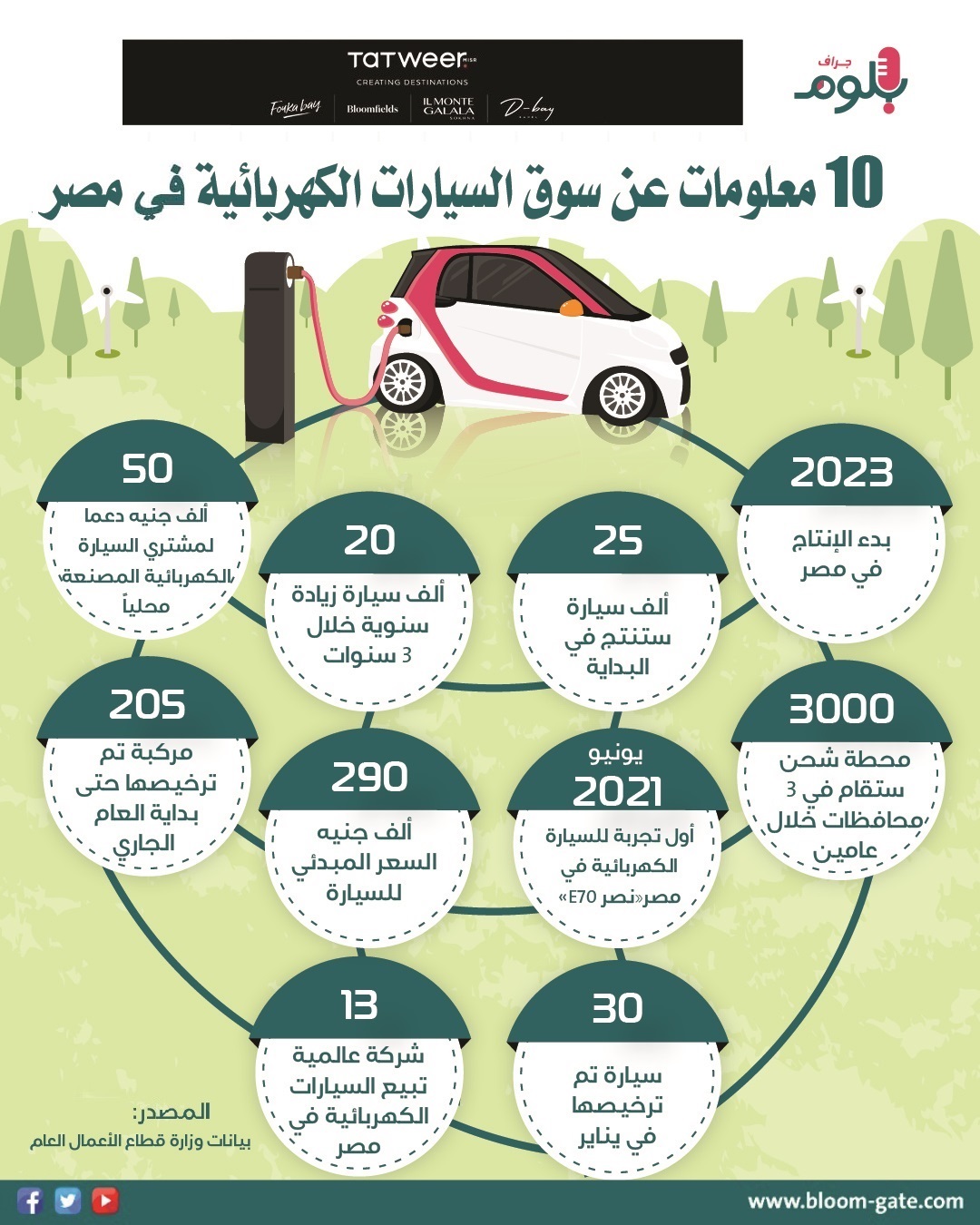 ومع تصدر ملف السيارات الكهربائية للاهتمام خلال الفترة الماضية، ومواصلة الحكومة خطواتها الجادة نحو التوسع في إنتاجها وتوزيعها، فإن إصدار اليوم من «بلوم جراف» سيركز على الفرص المتاحة أمام القطاع الخاص للاستثمار بها، حيث سنستعرض في الانفوجراف الآتي 10 معلومات عن تلك النوعية من السيارات في السوق المصري: