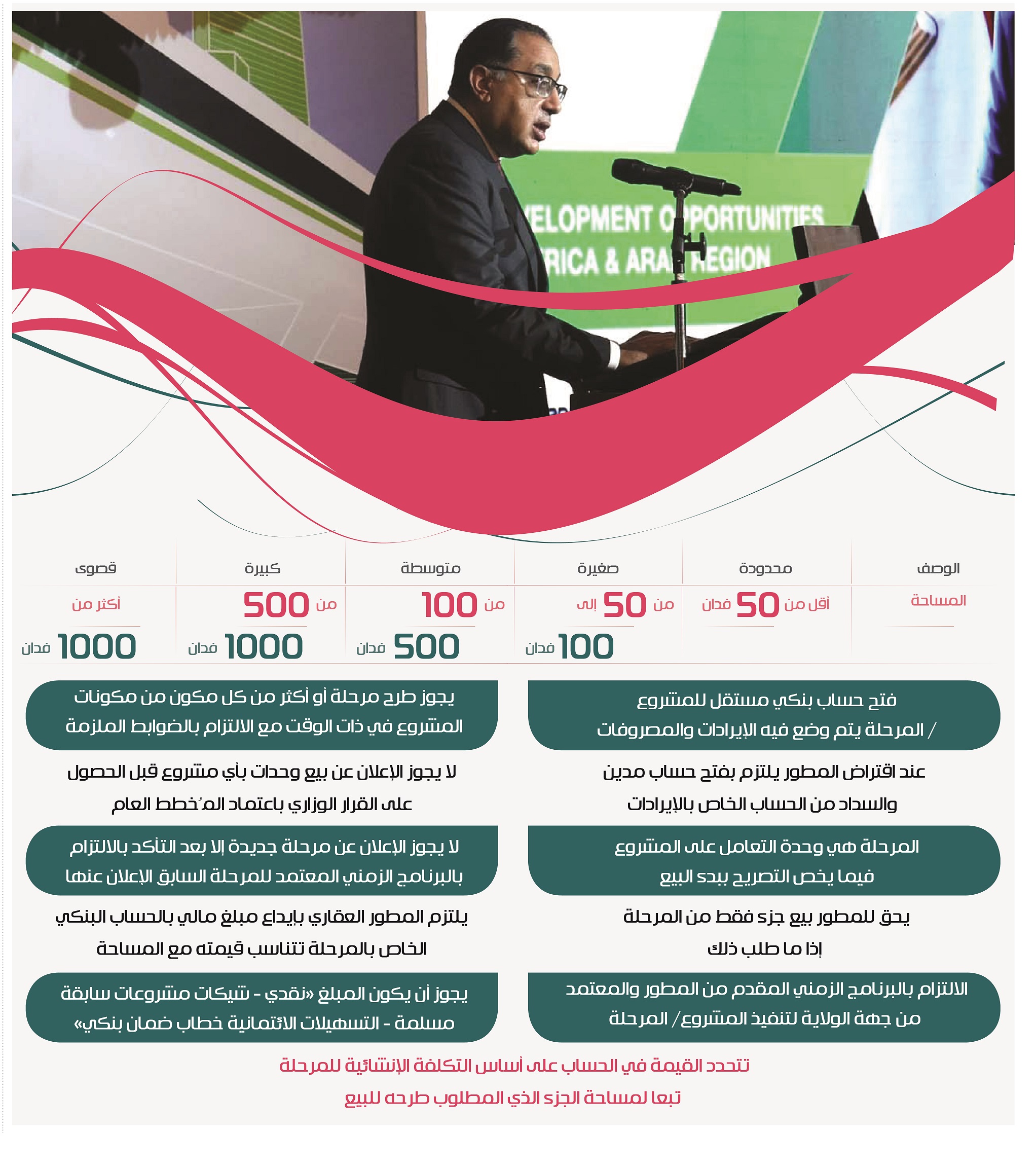 أصدر الدكتور مصطفى مدبولي، رئيس مجلس الوزراء، أمس، الضوابط والاشتراطات الخاصة ببيع وحدات مشروعات التطوير العقاري لضمان حقوق المشترين، مع إلزام جهات الولاية بإدراجها ضمن مستندات طرح مشروعات التطوير العقاري، وإدراجها أيضا ضمن ملاحق العقود المبرمة مع المطورين، وفيما يأتي نستعرض تلك الضوابط في الإنفوجراف الآتي..