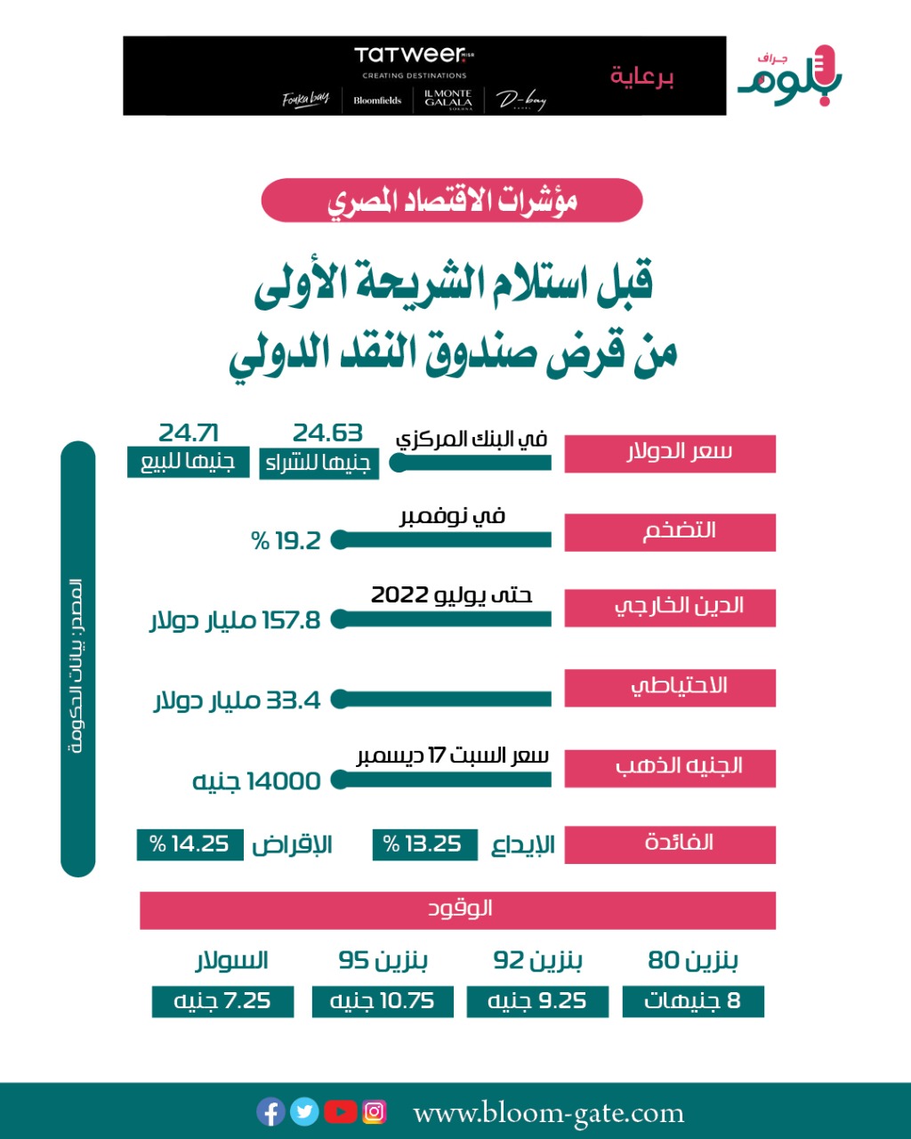سيطرت حالة من الترقب على كافة الأوساط الاقتصادية والاستثمارية، وذلك منذ إعلان صندوق النقد الدولي عن موافقة المجلس التنفيذي على منح مصر قرضا بقيمة 3 مليارات دولار، استعدادا لما سيتم اتخاذه من قرارات خلال الفترة المقبلة، وخاصة من البنك المركزي المصري والذي من المقرر أن يعقد اجتماعه يوم الخميس المقبل، ومن هذا المنطلق فإننا ركزنا في الإنفوجراف الآتي على المؤشرات الحالية للاقتصاد المصري لرصد أي تغيرات قد تطرأ عليه في الفترة القادمة.
