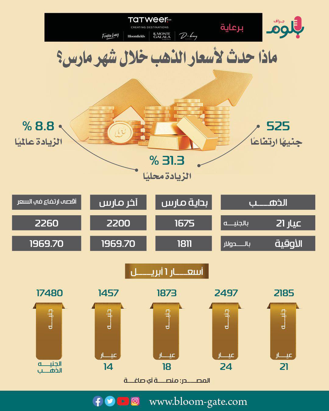 مرت أسعار الذهب في الأسواق المحلية بتقلبت كبيرة على مدار شهر مارس الماضي، في ظل أوضاع عالمية غير مستقرة، وترقب في السوق لحدوث تحركات متوقعة في أسعار صرف العملات أمام الجنيه، عقب قرار البنك المركزي برفع الفائدة، وشهد سعر المعدن الأصفر ارتفاعا بنسبة 31.3% خلال تعاملات شهر مارس، وفي الفيديوجراف الآتي سوف نسلط الضوء على حركة صعود وهبوط الذهب بالشهر الماضي..
