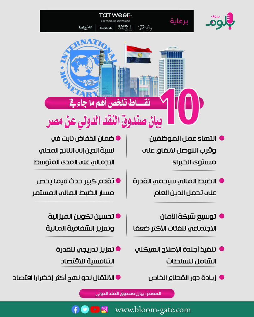 إنفوجراف.. 10 نقاط تلخص أهم ما جاء في بيان صندوق النقد الدولي عن مصر