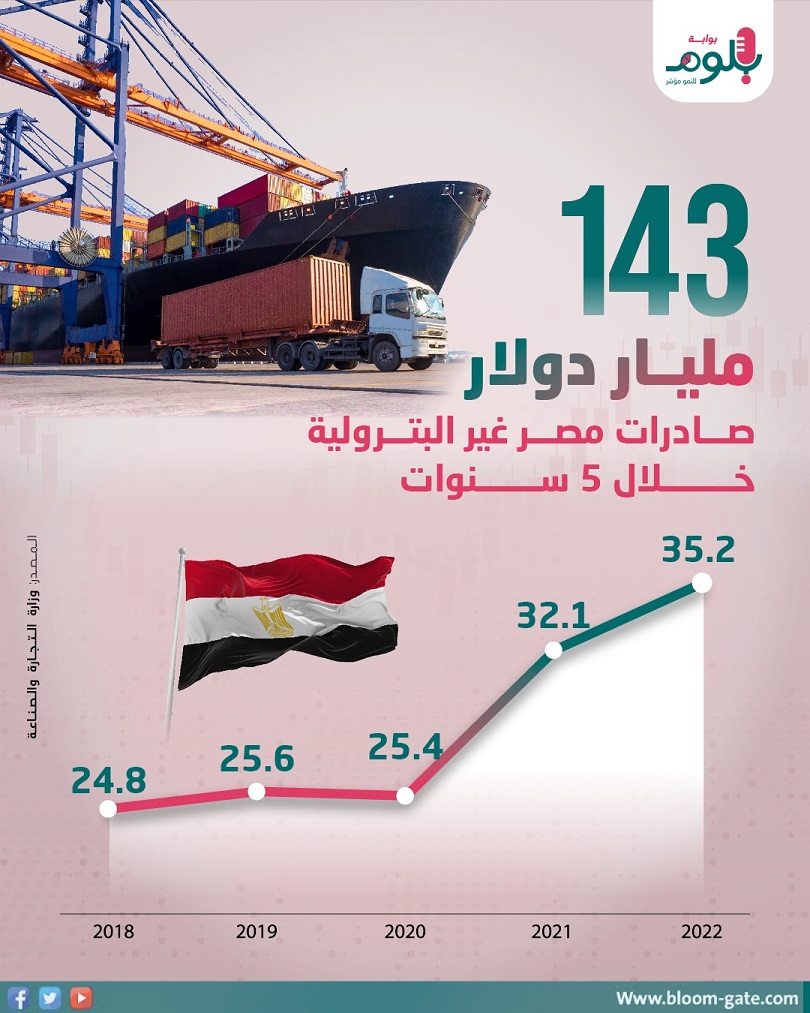 إنفوجراف.. 143 مليار دولار صادرات مصر غير البترولية خلال 5 سنوات