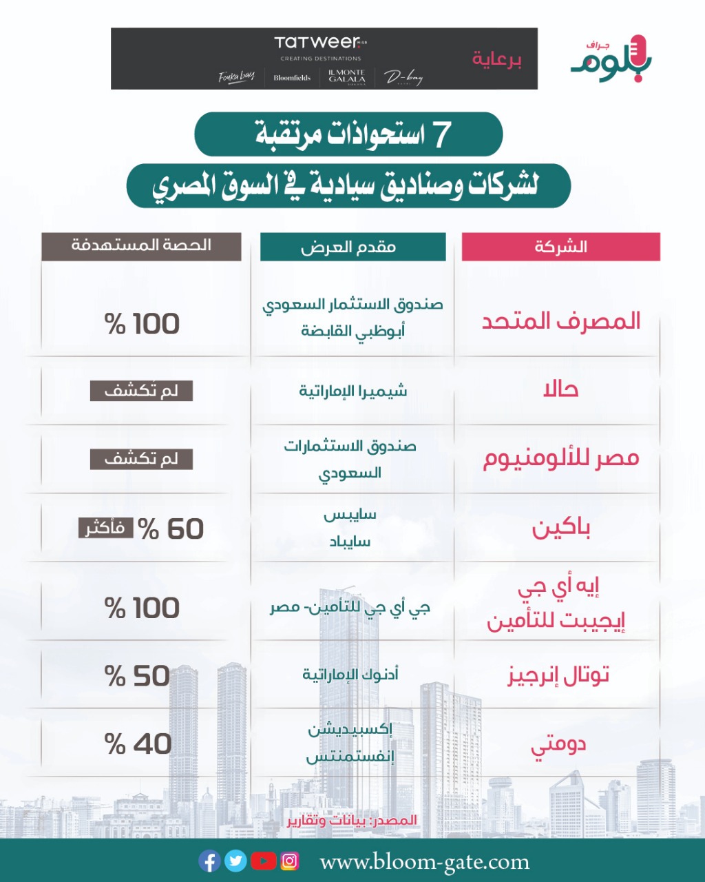 إنفوجراف.. 7 استحواذات مرتقبة لشركات وصناديق سيادية في السوق المصري