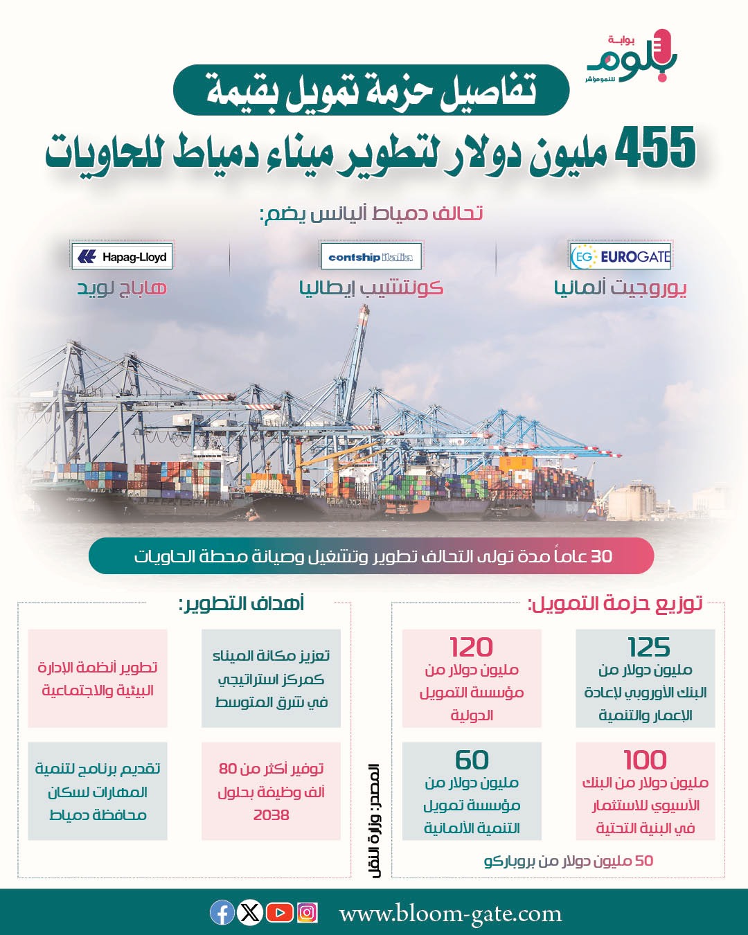 تفاصيل حزمة تمويل بقيمة 455 مليون دولار لتطوير ميناء دمياط للحاويات.. إنفوجراف
