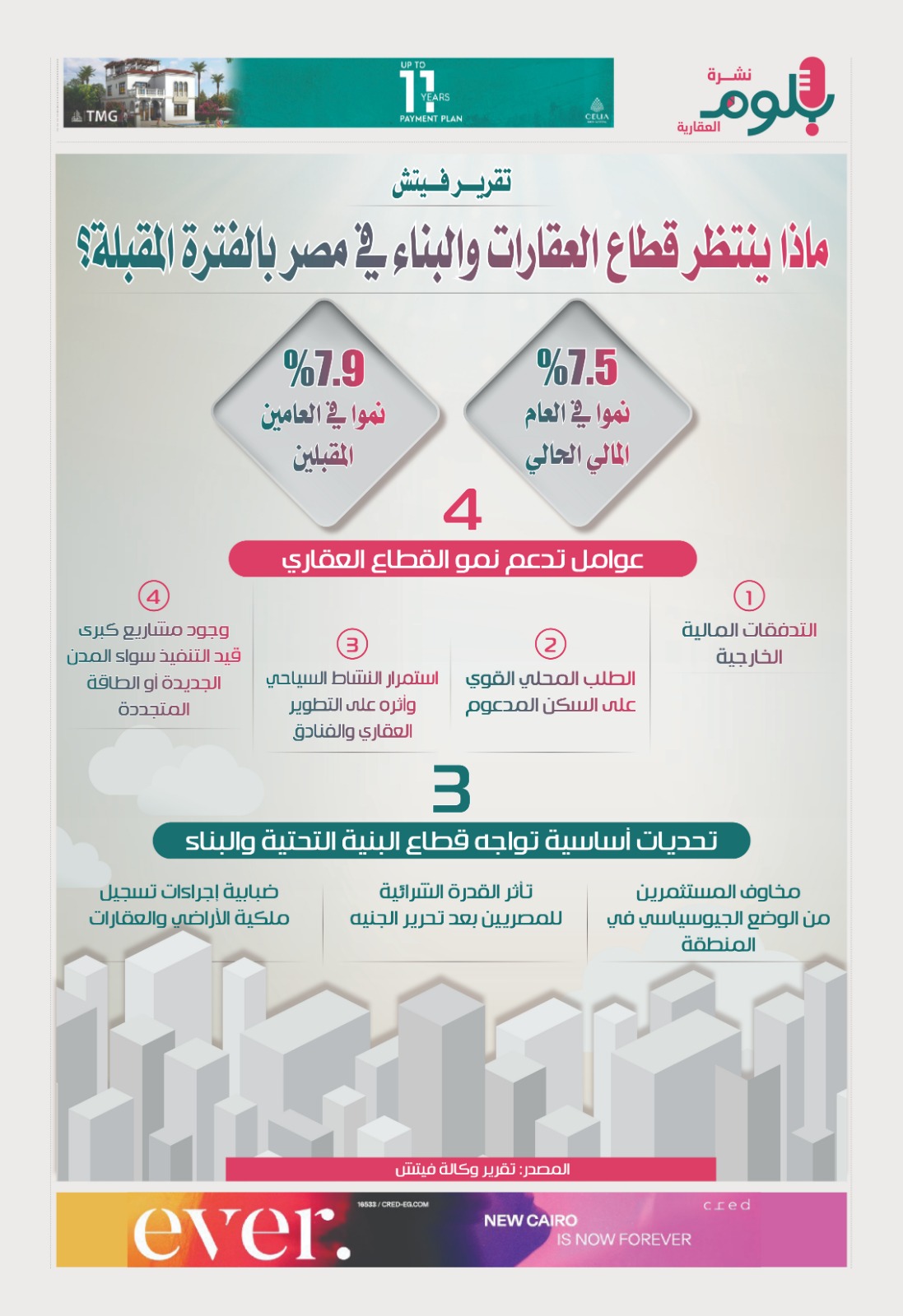 تقرير فيتش.. ماذا ينتظر قطاع العقارات والبناء في مصر بالفترة المقبلة؟ «إنفوجراف»