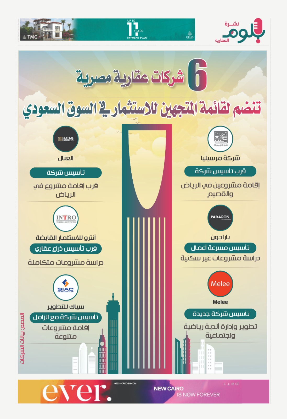 6 شركات عقارية مصرية تنضم لقائمة المتجهين للاستثمار في السوق السعودي.. إنفوجراف